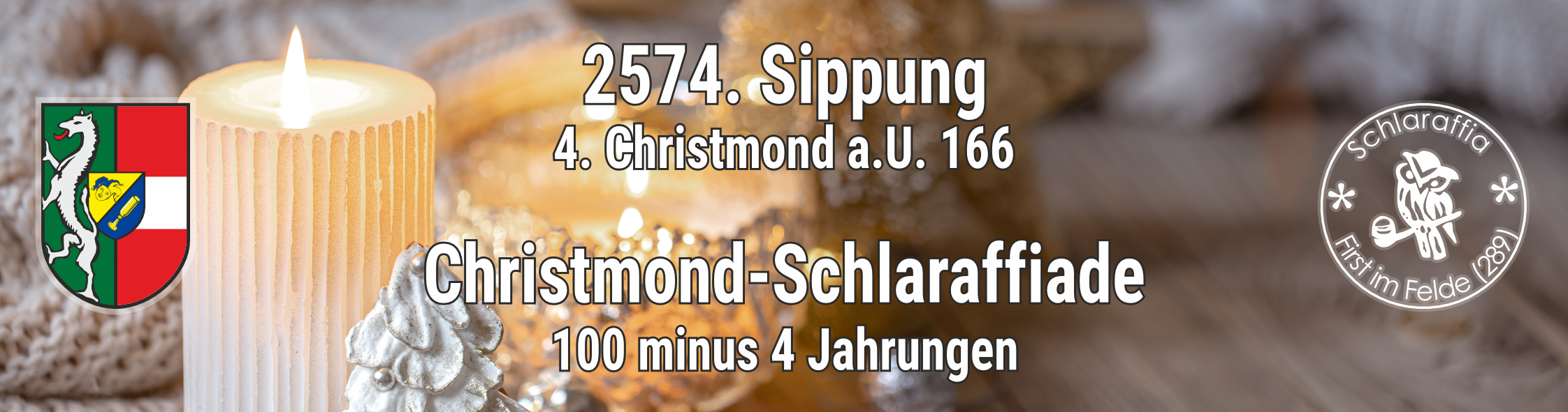 | 2574 | 04.12.166 | *Christmond-Schlaraffiade, 100 minus 4 Jahrungen | Anmeldung | |