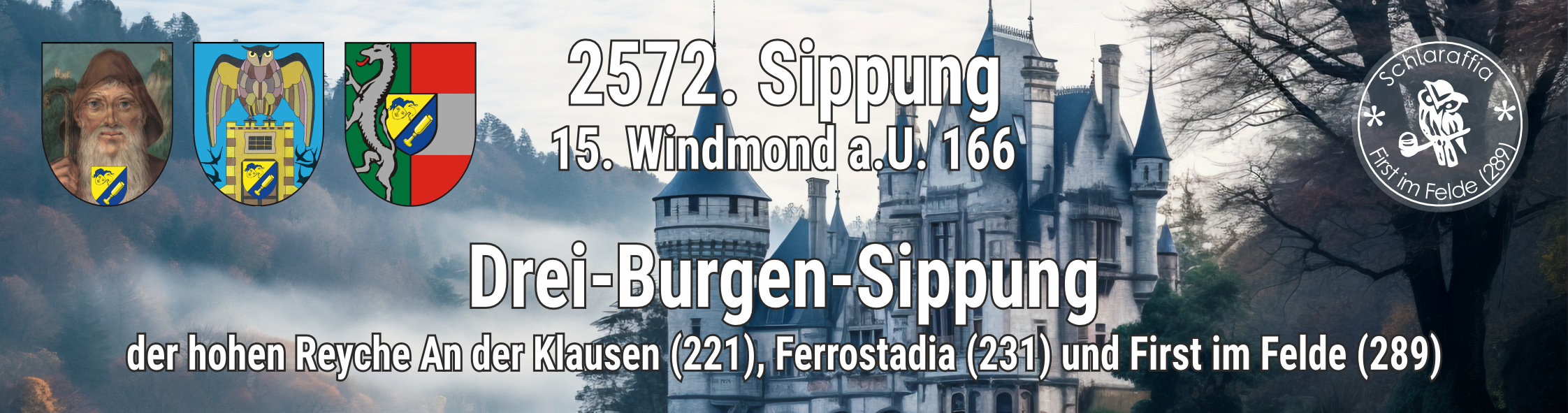 | 2572 | 15.11.166 | Samstag, Glock 6 d.A.! Drei-Burgen-Sippung der Reyche 221, 231, 289 mit Tross in der Festburg Grabherhaus des h.R. First im Felde (289) Einladung  | Lesen | Anmeldung |